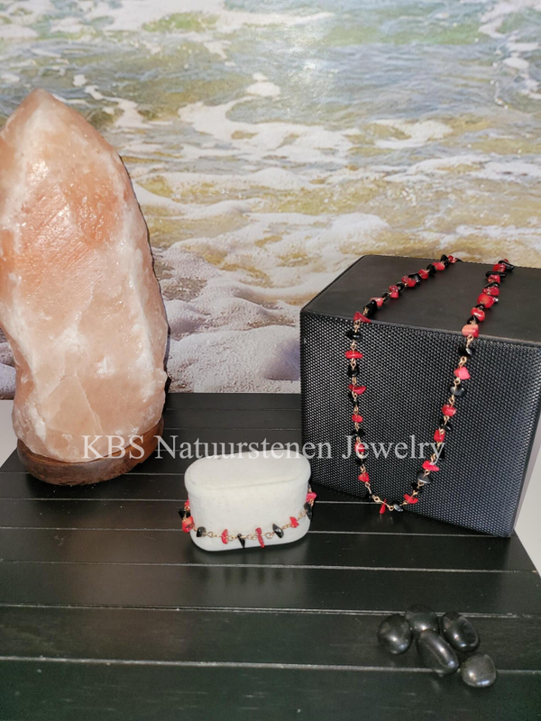 KBS Rode Jaspis Toermalijn Ketting plus armband